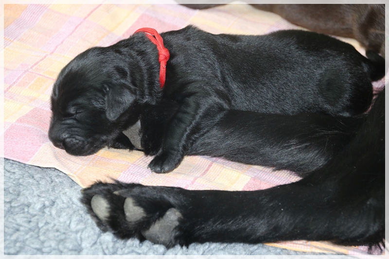 2 schwarze Hündinnen, 2 schwarze und 1 brauner Rüde werden nun in den nächsten 8 Wochen unser Leben bereichern!