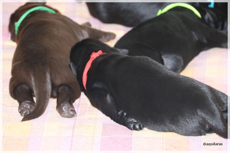 2 schwarze Hündinnen, 2 schwarze und 1 brauner Rüde werden nun in den nächsten 8 Wochen unser Leben bereichern!
