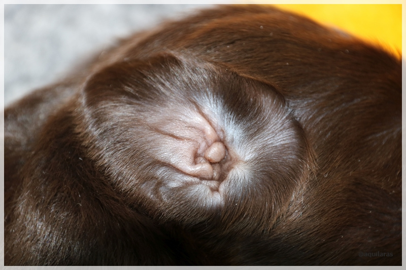 War es in den ersten Tagen noch so, dass ich Ebba überreden musste die Wurfkiste zu verlassen um Pipi machen, legt sie sich nun schon häufiger vor die Kiste um in Ruhe schlafen zu können und sich zu erholen.. Auch wenn es nur ein kleiner Wurf, sieht man ihr die Anstrengungen der Mutterrolle an
