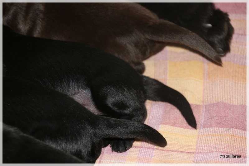 2 schwarze Hündinnen, 2 schwarze und 1 brauner Rüde werden nun in den nächsten 8 Wochen unser Leben bereichern!