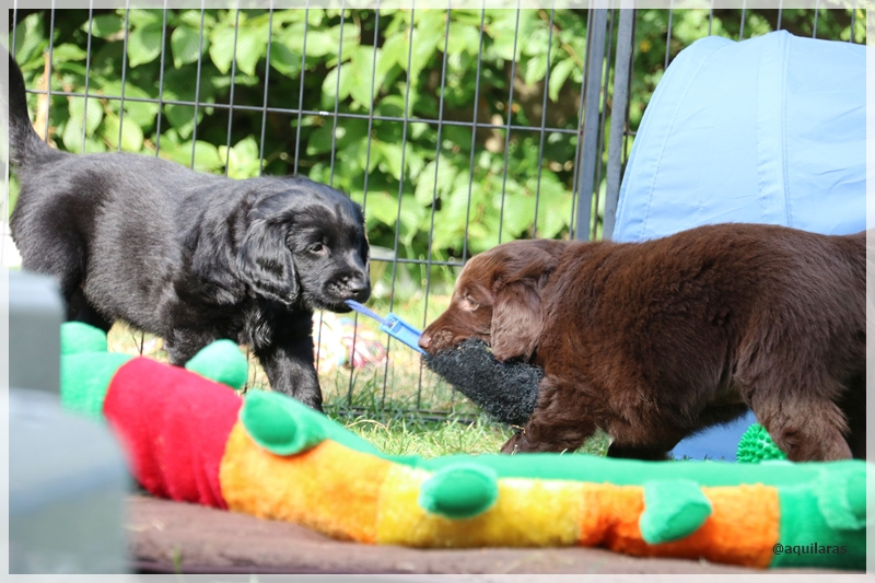 Für Aquilaras Auri hieß es dann am nächsten Tag Abschied nehmen. Sie ist zu Ulrike und ihrem Flatrüden Sirius nach Nordfriesland gezogen, was der kleinen Wasserratte sicher ganz besonders gefallen wird 🥰