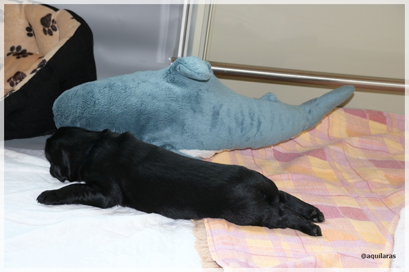 War es in den ersten Tagen noch so, dass ich Ebba überreden musste die Wurfkiste zu verlassen um Pipi machen, legt sie sich nun schon häufiger vor die Kiste um in Ruhe schlafen zu können und sich zu erholen.. Auch wenn es nur ein kleiner Wurf, sieht man ihr die Anstrengungen der Mutterrolle an