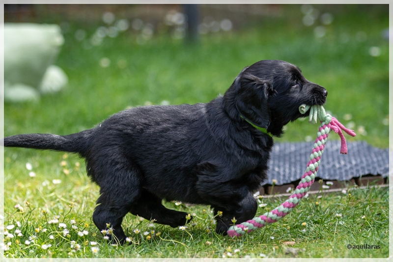 Für Aquilaras Auri hieß es dann am nächsten Tag Abschied nehmen. Sie ist zu Ulrike und ihrem Flatrüden Sirius nach Nordfriesland gezogen, was der kleinen Wasserratte sicher ganz besonders gefallen wird 🥰