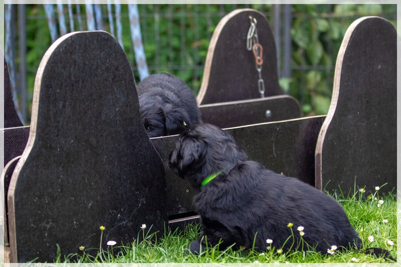 Und es gab zwei neue Hundebekanntschaften, die die Welpen knüpfen durften, natürlich mit Zaun zwischen den neugierigen Nasen. Josie, Ebbas Trainingspartnerin und Sirius, der in 3 Wochen eine kleine schwarze Begleiterin haben wird, haben den Mittwochnachmittag mit ihren Menschen bei uns verbracht.