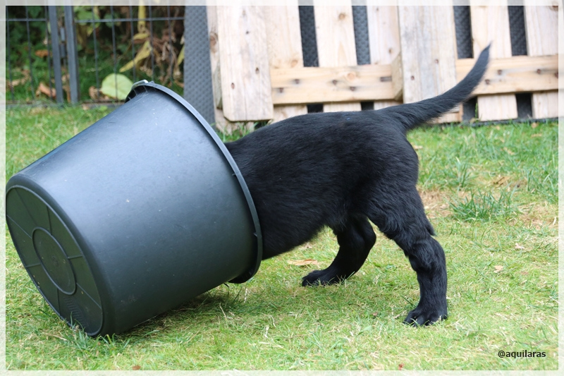 Und es gab zwei neue Hundebekanntschaften, die die Welpen knüpfen durften, natürlich mit Zaun zwischen den neugierigen Nasen. Josie, Ebbas Trainingspartnerin und Sirius, der in 3 Wochen eine kleine schwarze Begleiterin haben wird, haben den Mittwochnachmittag mit ihren Menschen bei uns verbracht.