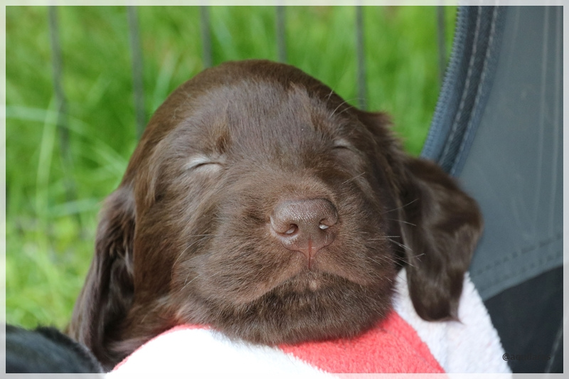 Für Aquilaras Auri hieß es dann am nächsten Tag Abschied nehmen. Sie ist zu Ulrike und ihrem Flatrüden Sirius nach Nordfriesland gezogen, was der kleinen Wasserratte sicher ganz besonders gefallen wird 🥰