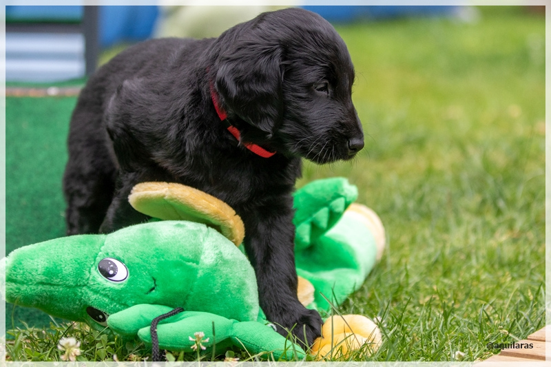 Für Aquilaras Auri hieß es dann am nächsten Tag Abschied nehmen. Sie ist zu Ulrike und ihrem Flatrüden Sirius nach Nordfriesland gezogen, was der kleinen Wasserratte sicher ganz besonders gefallen wird 🥰