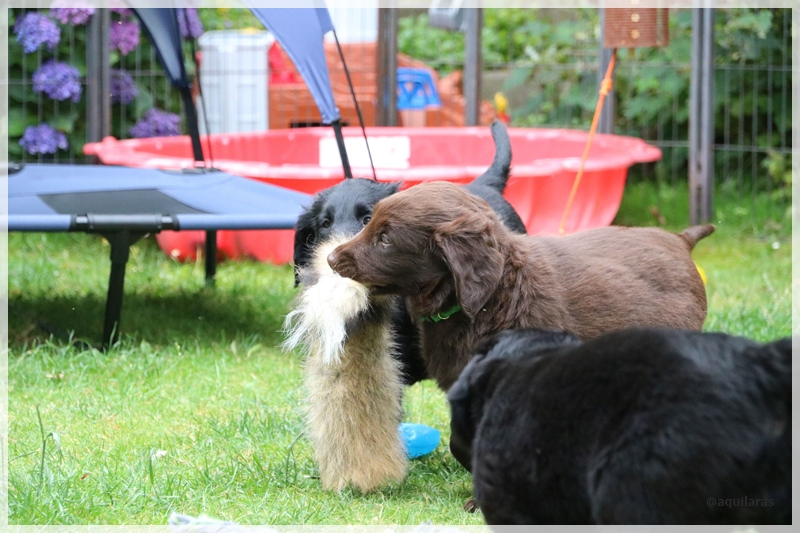 Für Aquilaras Auri hieß es dann am nächsten Tag Abschied nehmen. Sie ist zu Ulrike und ihrem Flatrüden Sirius nach Nordfriesland gezogen, was der kleinen Wasserratte sicher ganz besonders gefallen wird 🥰