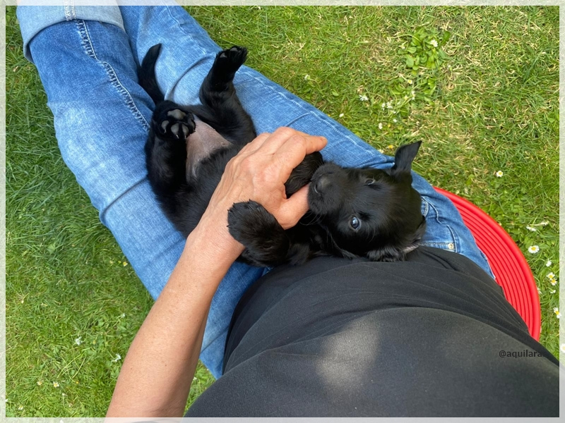 Für Aquilaras Auri hieß es dann am nächsten Tag Abschied nehmen. Sie ist zu Ulrike und ihrem Flatrüden Sirius nach Nordfriesland gezogen, was der kleinen Wasserratte sicher ganz besonders gefallen wird 🥰