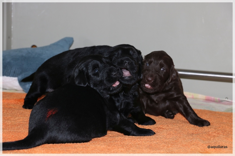 2 schwarze Hündinnen, 2 schwarze und 1 brauner Rüde werden nun in den nächsten 8 Wochen unser Leben bereichern!