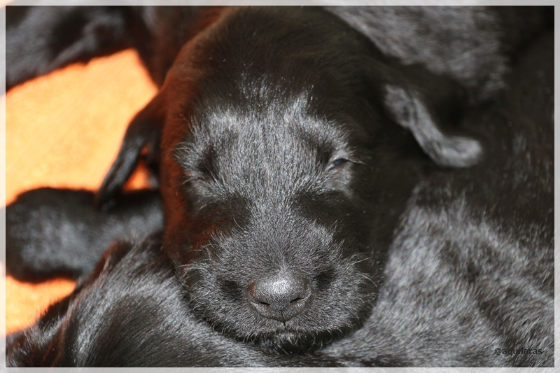 Ebba ist eine sehr fürsorgliche Mutter und kümmert sich liebevoll um ihre Welpen, die ausgesprochen ruhig und zufrieden sind. Na 😉bei so kleiner Konkurrenz muss man sich ja auch keinen Sorgen um die Milch machen, ist ja genug für alle da…