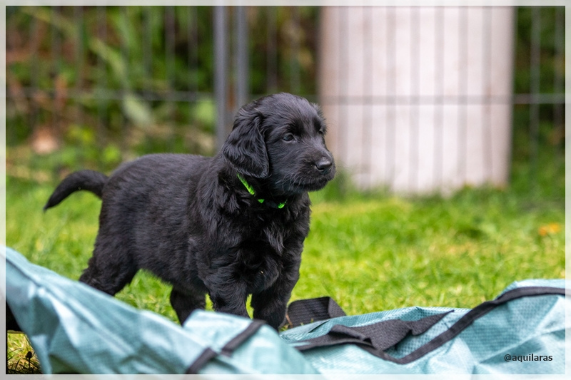 Für Aquilaras Auri hieß es dann am nächsten Tag Abschied nehmen. Sie ist zu Ulrike und ihrem Flatrüden Sirius nach Nordfriesland gezogen, was der kleinen Wasserratte sicher ganz besonders gefallen wird 🥰