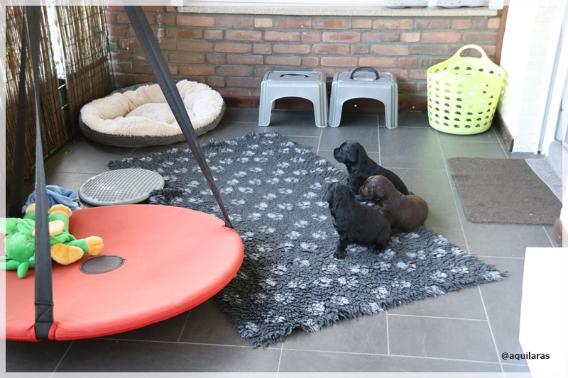 In den letzten Tagen haben die Kleinen ihre beiden Draußenspielplätze erobert. Direkt vom Innenauslauf geht es auf den Balkon, der mit kleiner Pipiwiese, Schaukel und anderen Dingen ausgestattet ist. Die Bande hält sich wirklich gern dort auf und so sitze ich schon morgens um 5 Uhr 🥱 mit meinen Kaffee draußen und schaue ihnen bei ihren morgendlichen Aktionen zu. Nach einer intensiven halben Stunde legen sich die Monster dann wieder schlafen und ich fang an zu putzen 🙄
