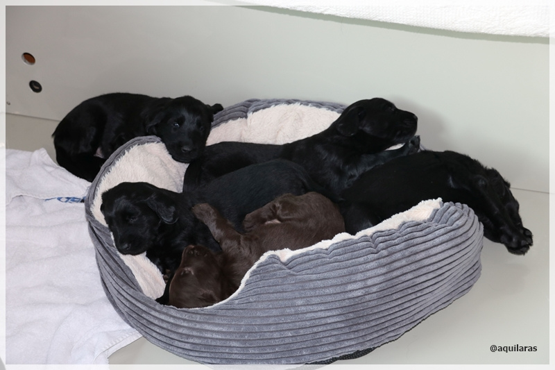 2 schwarze Hündinnen, 2 schwarze und 1 brauner Rüde werden nun in den nächsten 8 Wochen unser Leben bereichern!