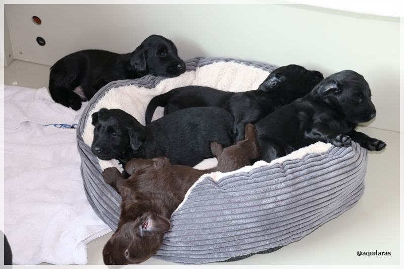 2 schwarze Hündinnen, 2 schwarze und 1 brauner Rüde werden nun in den nächsten 8 Wochen unser Leben bereichern!