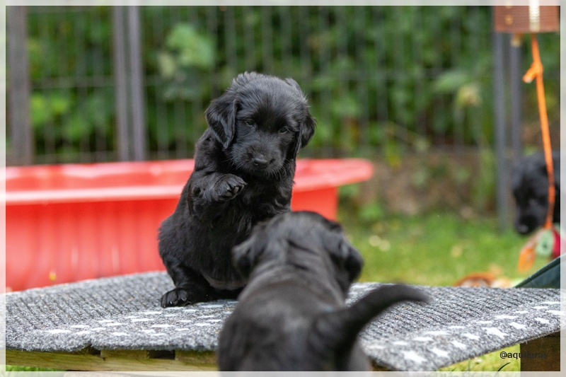 Für Aquilaras Auri hieß es dann am nächsten Tag Abschied nehmen. Sie ist zu Ulrike und ihrem Flatrüden Sirius nach Nordfriesland gezogen, was der kleinen Wasserratte sicher ganz besonders gefallen wird 🥰
