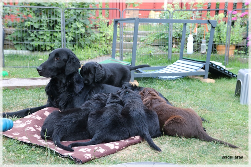 Für Aquilaras Auri hieß es dann am nächsten Tag Abschied nehmen. Sie ist zu Ulrike und ihrem Flatrüden Sirius nach Nordfriesland gezogen, was der kleinen Wasserratte sicher ganz besonders gefallen wird 🥰