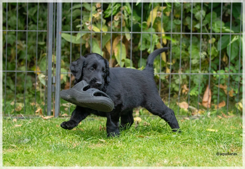 Für Aquilaras Auri hieß es dann am nächsten Tag Abschied nehmen. Sie ist zu Ulrike und ihrem Flatrüden Sirius nach Nordfriesland gezogen, was der kleinen Wasserratte sicher ganz besonders gefallen wird 🥰
