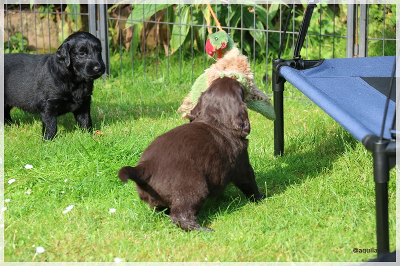 Für Aquilaras Auri hieß es dann am nächsten Tag Abschied nehmen. Sie ist zu Ulrike und ihrem Flatrüden Sirius nach Nordfriesland gezogen, was der kleinen Wasserratte sicher ganz besonders gefallen wird 🥰